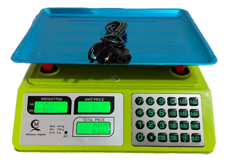 - 100% Novo e Lacrado - Medidas da Balança: 33 x 34 x 11,5cm; - Medida da bandeja: 34,5 x 23cm; - Precisão: 1/3000 F.S.; - Entrada AC: 110/220 (bivolt); - Capacidade: 40Kg com escala de 2g. - Painel de exibição:16 dígitos; - Display de peso: 5 dígitos; - Cores: Branco ou Verde; - Selo do Inmetro: Não.
