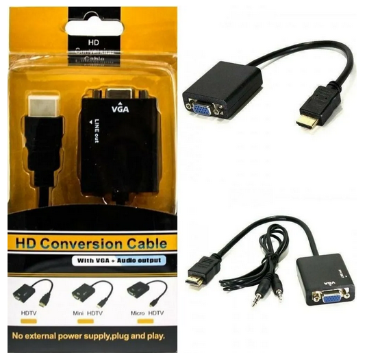 Caracteristicas: Excelente qualidade. Simplesmente ligue-o na entrada do cabo HDMI e conecte o seu cabo VGA na sua outra ponta. Use na saída de notebooks modernos que não tem mais saída VGA para ligar em monitores tradicionais, CRT e LCD que não tem entrada digital. Saida de audio P2 Stéreo