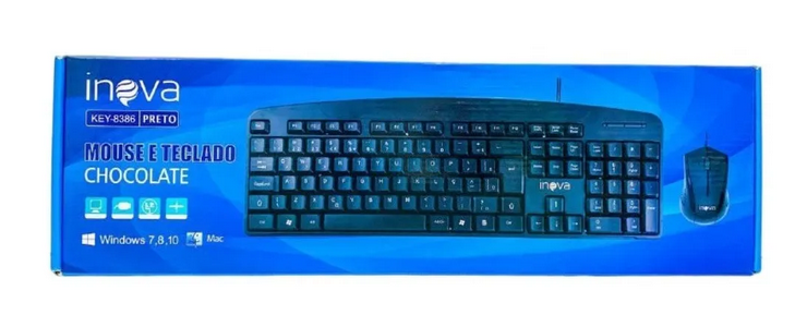 KIT TECLADO E MOUSE CHOCOLATE KEY-8387 PRETO INOVA