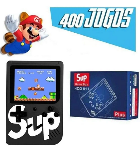 Itens Incluso: 1 x Game Box Sup 400 in 1 1 x Cabo AV 1 x Mini Cabo de Carregamento USB 1 x Bateria De Lítio Recarregável 1 x Manual Do Usuário