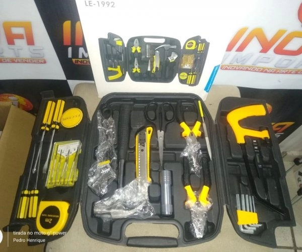 MALETA KIT JOGO FERRAMENTAS 26 PÇS IT-BLUE LE-1992 MULTIUSO Kit de ferramentas com 26 peças indicado para uso doméstico e pequenos reparos. Produto fabricado em material resistente, oferecendo durabilidade e praticidade. Ideal para ter sempre à mão, pois pode ser facilmente acondicionado na dispensa ou no interior de veículos. Além disso, possui maleta com alça tornando-se um item de fácil transporte. 1 Maleta Plastica 5 Chaves Allen 1 Lima 1 Serra 1 Teste de tensão 1 Alicate 6" 1 Alicate de bico reto 1 Tesoura 1 Faca 1 Martelo de Unha (8 oz) 1 Chave Inglesa 8" 1 Fita métrica (2m) 2 Chaves de fenda 6x100 6 Chaves de fenda de precisão 2 Chaves de fenda 3x100 1 Fita de PVC