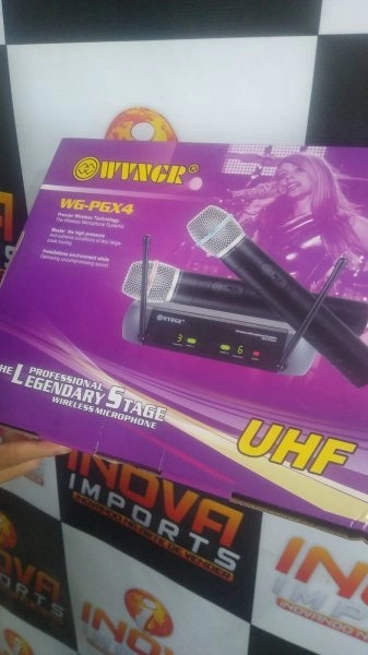 Conteúdo da embalagem: 01 - Receptor 02 - Microfones de mão 02 - Baterias 01 - Fonte 110V 01 - Cabo P10 X P10 01 - Manual de Instrução
