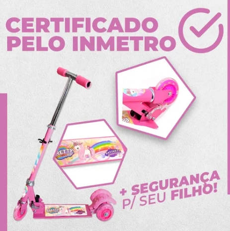 Procurando o brinquedo ideal para que seu filho se divirta de verdade? O Patinete Pretty Unicórnio é ideal para brincar no parque, na rua e também nas praças, super resistente e robusto com o corpo todo em metal, rodinhas em PVC e com LED!